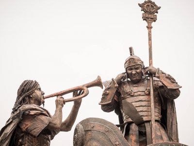Dit standbeeld is gebaseerd op het beroemde verhaal van de strijd tussen Vercingetorix en Caesar.