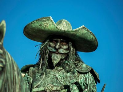 Dit standbeeld is gebaseerd op het beroemde verhaal van de dolende ridder Don Quichotte, geschreven Miguel de Cervantes. Het verhaal is erg bekend geworden onder de naam “de man van La Mancha”.