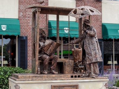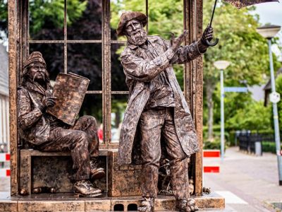Dit standbeeld is geïnspireerd op een fragment uit de film “Homeless” van Stan Laurel en Oliver Hardy.