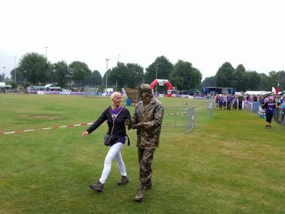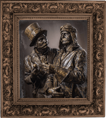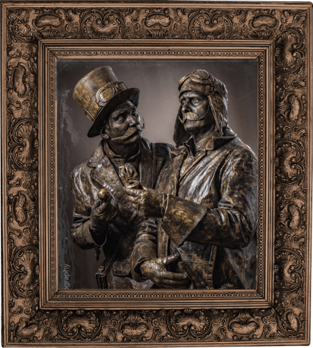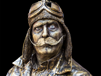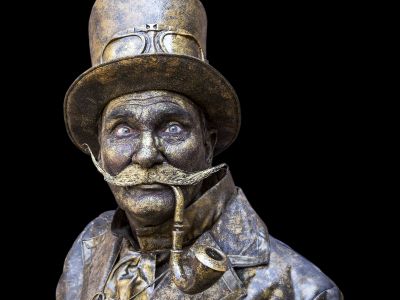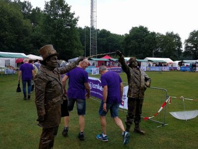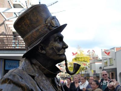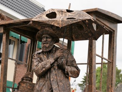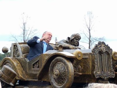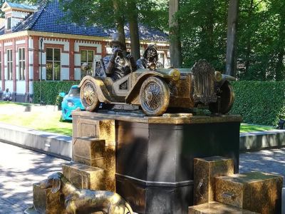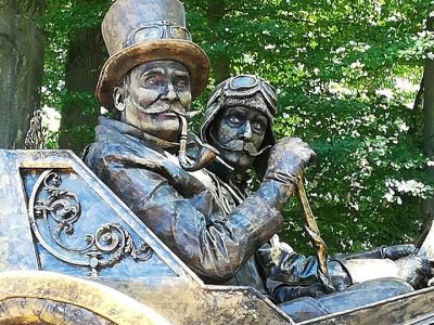 Kalefater heeft dit gegeven gebruikt als basis voor een twee minuten durende humoristische straattheater/ living statue act. De voorbijganger ziet een bijzondere oldtimer op een grote sokkel met daarin een eigenzinnig heerschap en zijn wat sullige chauffeur. Aan de voet van de sokkel liggen enkele koffers als symbool voor het feit dat de twee heren op reis zijn. Het eigenzinnige heerschap is zo trots op zijn auto dat hij omstanders uit het publiek uitnodigt om een ritje te maken in zijn bijzondere auto. Zowel kinderen als volwassenen kunnen de uitdaging aangaan.